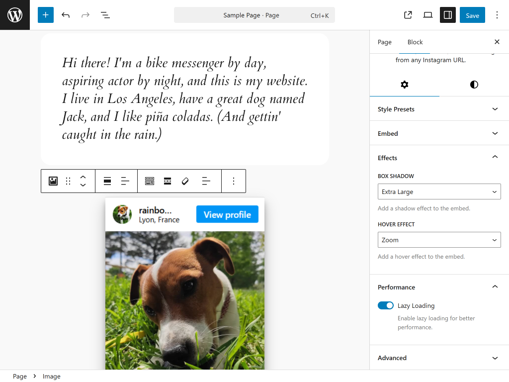 - Built-in Block Editor Controls: Fine-tune the appearance of your Instagram embeds directly within the WordPress block editor, adjusting dimensions, alignment, and other visual aspects.